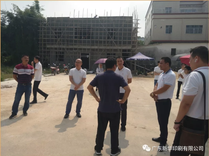 炎炎烈日下,陈少波书记带领大家参观了广东省出版集团帮扶桥冲村的文化广场、综合市场、商铺扶贫楼、村口党建广场等已建及拟建项目。